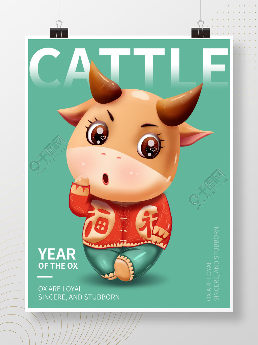 - 简约中国风2021牛年字体新年创意海报 2021-01-01