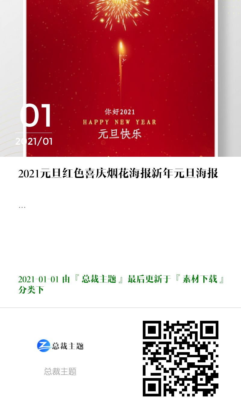 - 2021元旦红色喜庆烟花海报新年元旦海报 2021-01-01