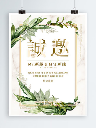 - 小清新植物边框婚礼邀请函简约海报背景 2021-01-01