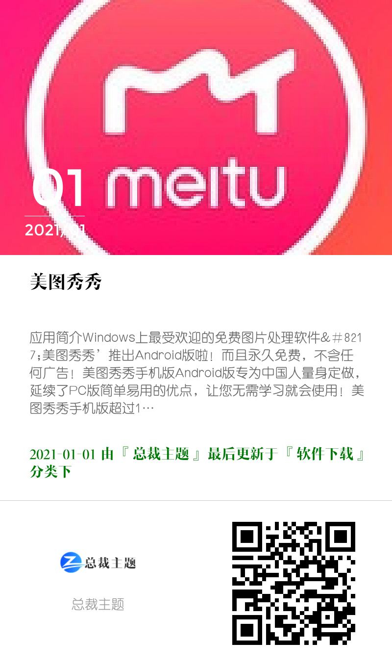 Windows上最受欢迎的免费图片处理软件’美图秀秀‘推出Android版啦!而且永久免费,不含任何广告!美图秀秀手机版Android版专为中国人量身定做,延续了PC版简单易用的优点,让您无需学习就会使用!美图秀秀手机版超过1