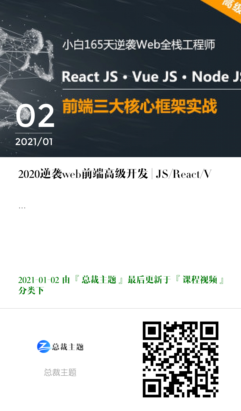 酷站网络 课程视频 2020逆袭web前端高级开发 | JS/React/VueJS/NodeJS框架实战 https://www.zaobj.com/677.html